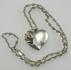 LOT 344 Sterling Silver (marked) Gorham Sweetheart Pendant on Italian Chain, 17"L, 21.5g. Estimate: $60 - $100 Sold For: $70 Auction Date: Tuesday, July 15 2025 at 4:00 PM
