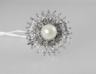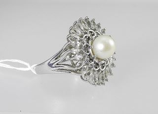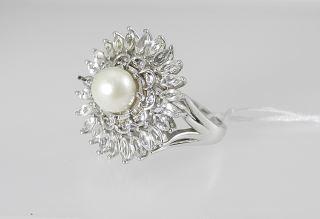 Sterling (marked 925) White Topaz & Pearl Ring, Size 9 1/4, 8.5g.