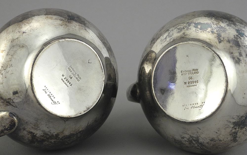 LOT 113 Mappin & Webb Embassy Plate Tea & Coffee Service Design: Eric Clements , 7 1/2"h. Estimate: $50 - $60 Sold For: $30 Auction Date: Tuesday, July 15 2025 at 4:00 PM
