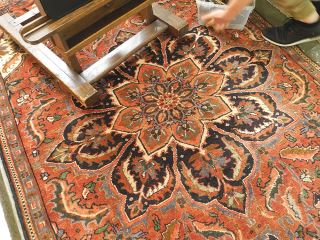 Hand Knotted Heriz Carpet Approximately 4'11" x 7'11".