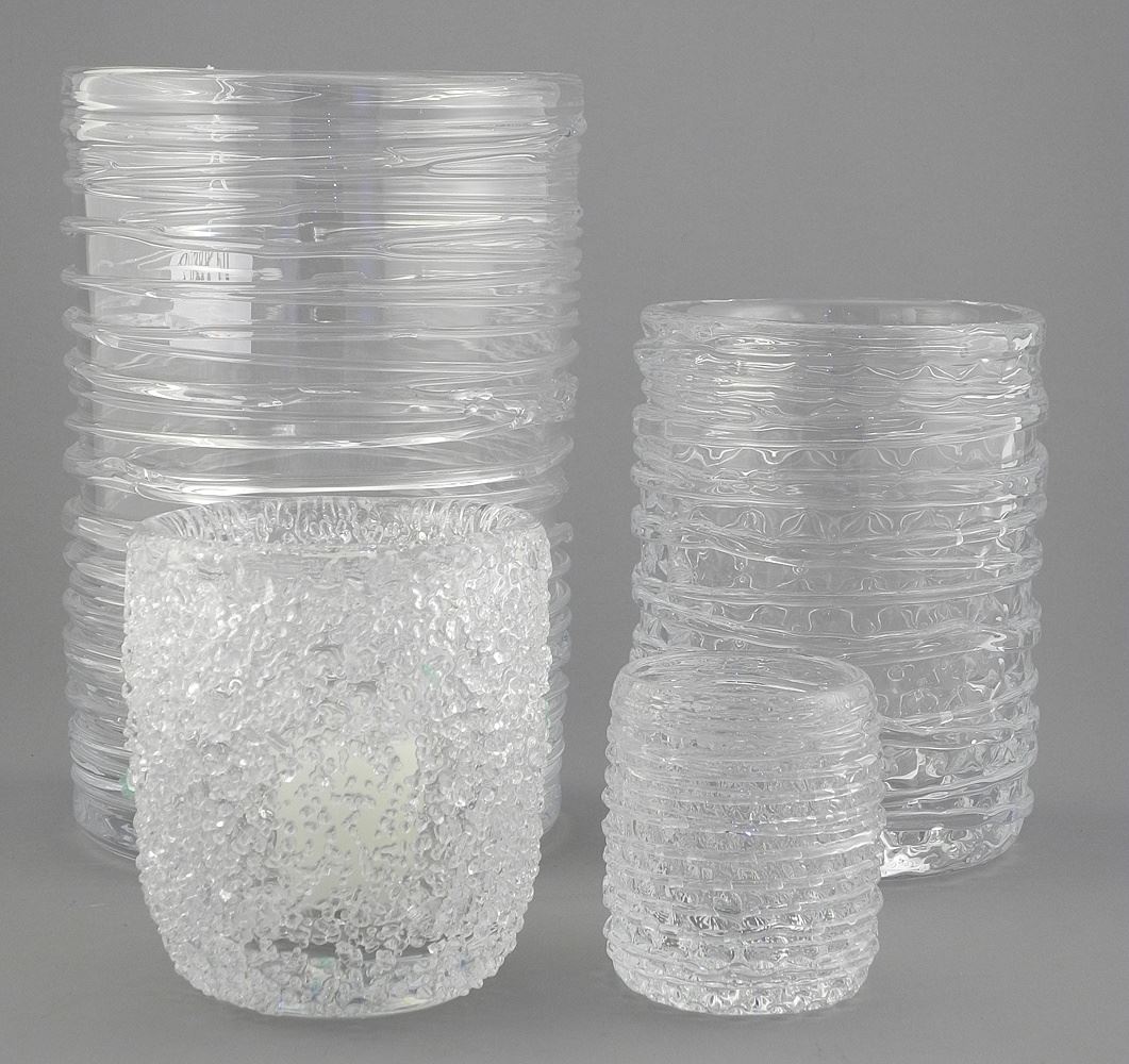 Four Simon Pearce Crystal Vases/ Candle Stands, 3 1/4 - 9 3/8"h.
