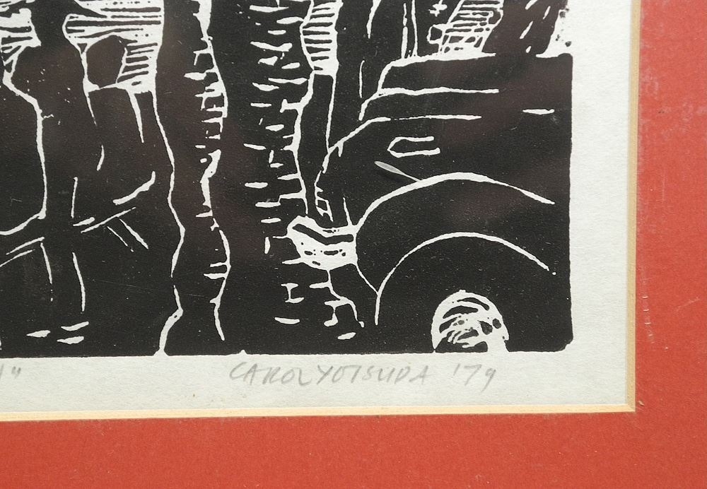 Etching & Block Print signed Carol Yotsuda, Larger 6 1/2 x 9 1/2, "Weaver" & "Moon Rises".