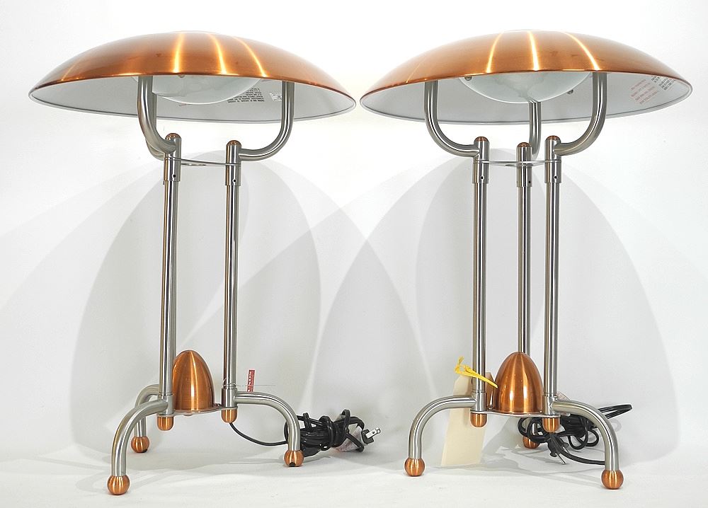 LOT 50 Pair of Arte Moderne Copper & Stainless Steel Halogen Table Lamps, 21 1/2"h. Estimate: $100 - $200 Sold For: $325 Auction Date: Tuesday, November 18 2025 at 4:00 PM