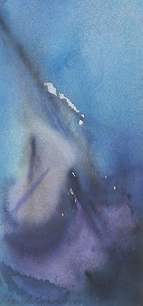 Watercolour signed S.Rauleonie (Slovenia), 8 1/2 x 4", "Composition in Purple & Blue".