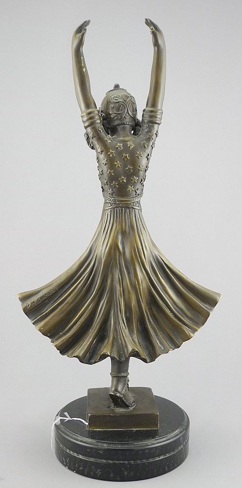 LOT 51 Copper Alloy Sculpture After Chiparus, 18 1/2"h, "Antinea". Estimate: $150 - $200 Sold For: $150 Auction Date: Tuesday, November 18 2025 at 4:00 PM