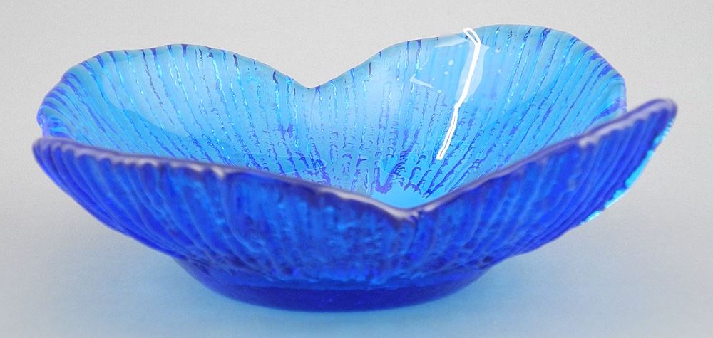 LOT 222 Blenko Blue Glass Petal Trinket Dish , 6 5/8" Diameter. Estimate: $50 - $60 Sold For: $25 Auction Date: Tuesday, November 18 2025 at 4:00 PM