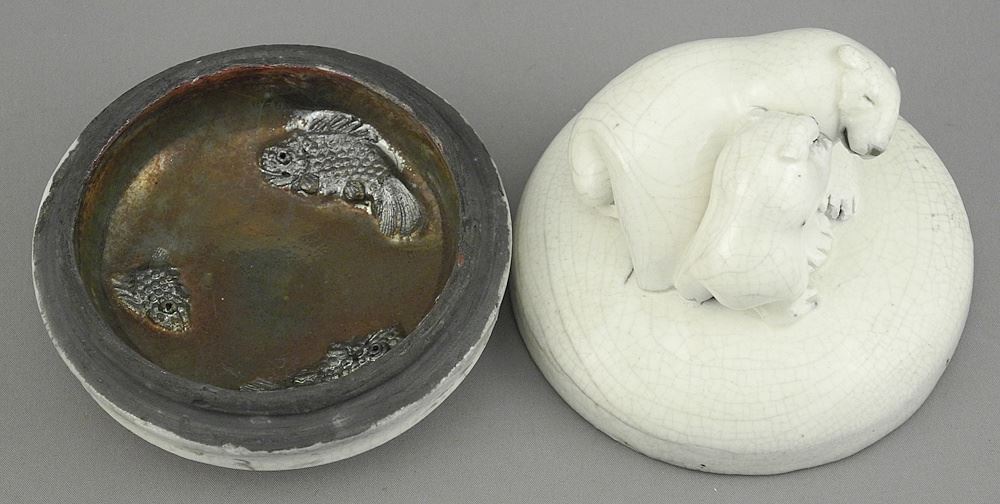Raku "Polar Bear" Box signed Barb Sachs, 3 1/2" Diameter.