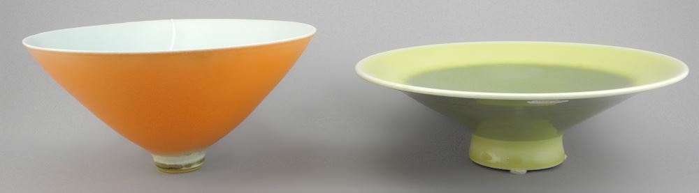 Two Mastro Paolo Orvieto Vases & Two Everted Rim Bowls, 2 1/2 - 4 1/4"h.