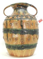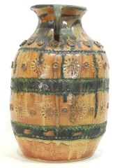 Stoneware Handled Pot signed Margo, 17 1/2"h.