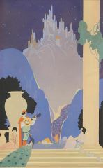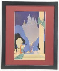 Mixed Media Illustration signed Lee Mero, 16 x 10", "Minstral Serenading Ladies".