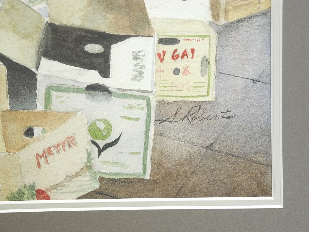 Watercolour signed S. Robert, 10 1/4 x 14", "Roadside Grocery".