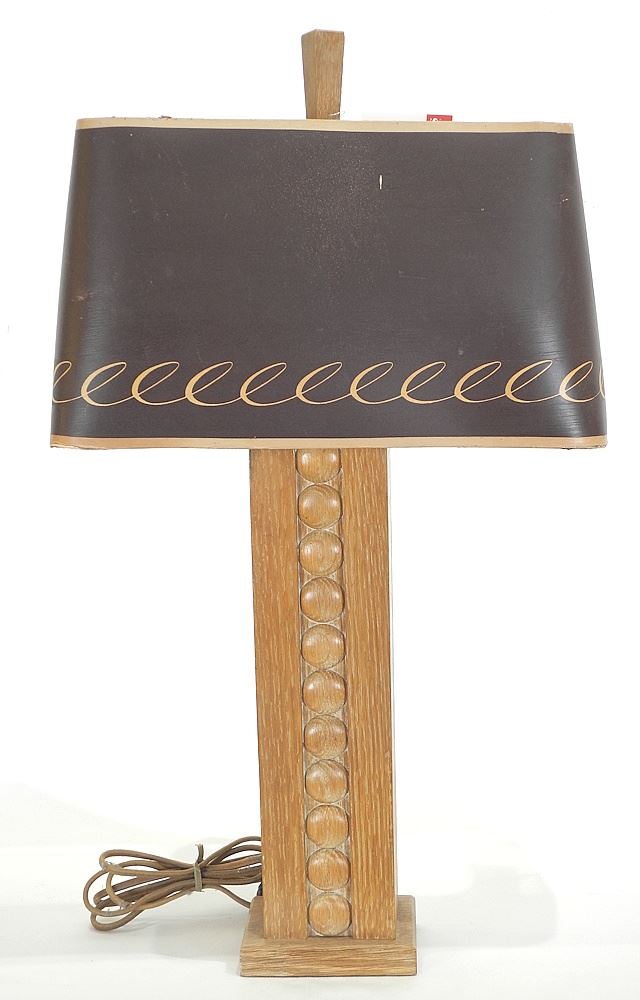 LOT 98 1940s Art Deco Oak Table Lamp, 25 1/2" High. Estimate: $50 - $60 Sold For: $45 Auction Date: Tuesday, November 18 2025 at 4:00 PM