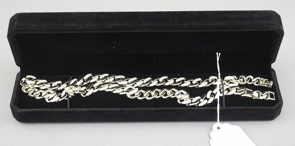 LOT 177 14K Gold Plated Iced Out Cuban Necklace, 19-20"L. Estimate: $60 - $80 Sold For: $30 Auction Date: Tuesday, November 18 2025 at 4:00 PM