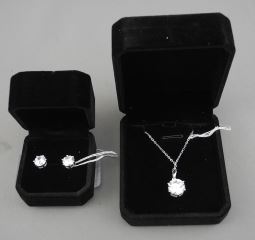 LOT 299 CZ Necklace & Earrings Mounted in Sterling with White Gold Overlay, 16 -18"L. Estimate: $60 - $80 Sold For: $10 Auction Date: Tuesday, November 18 2025 at 4:00 PM
