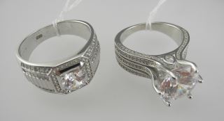 LOT 185 CZ Tri-Band Ring (Size 7.5) & Man's Ring, Size 10, Mounted in Sterling with White Gold Overlay. Estimate: $60 - $100 Sold For: $10 Auction Date: Tuesday, November 18 2025 at 4:00 PM