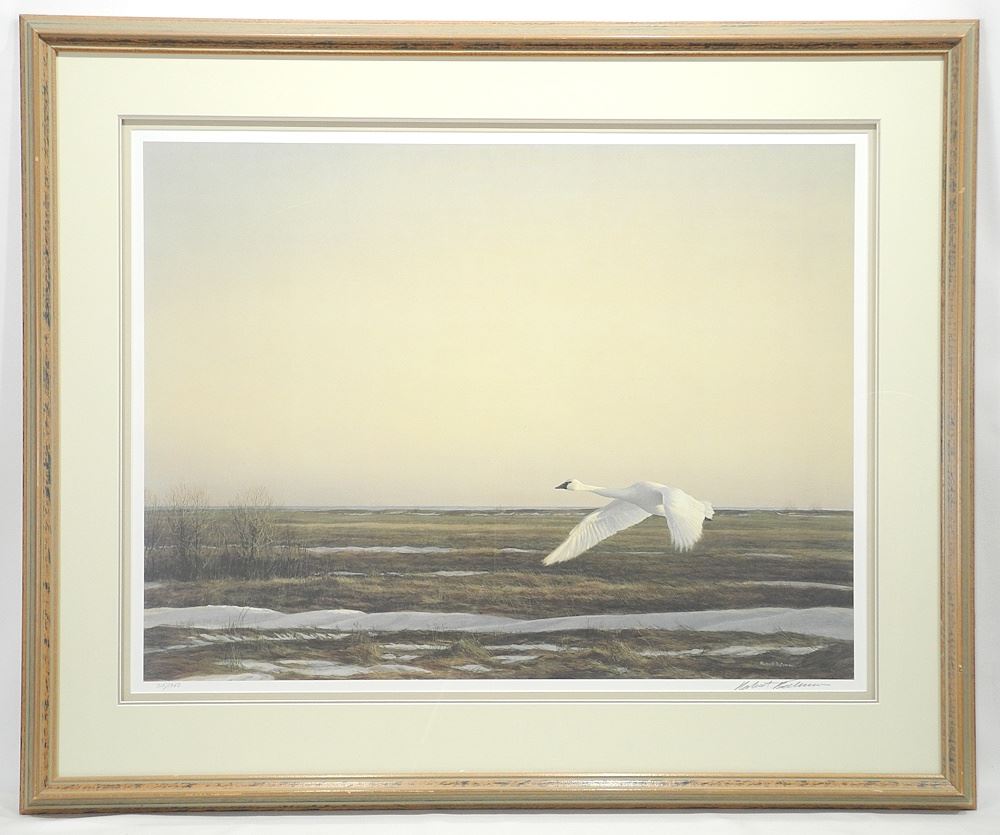 LOT 58 LEP signed Robert Bateman, 24 x 31 1/2", "Whistling Swan-Lake Erie" #215/1950. Estimate: $100 - $200 Sold For: $80 Auction Date: Tuesday, November 18 2025 at 4:00 PM