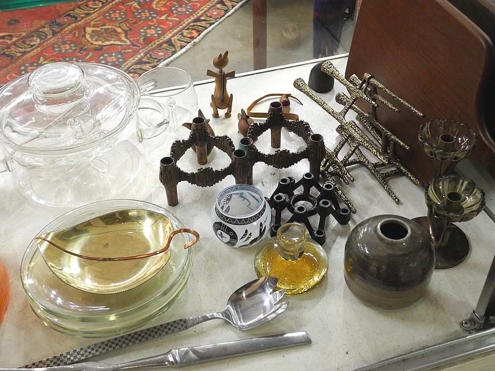 Nollection of Mid Century Table Wares & Sundries: Teak/Thyssen/Kosh Boda/Candlesticks.