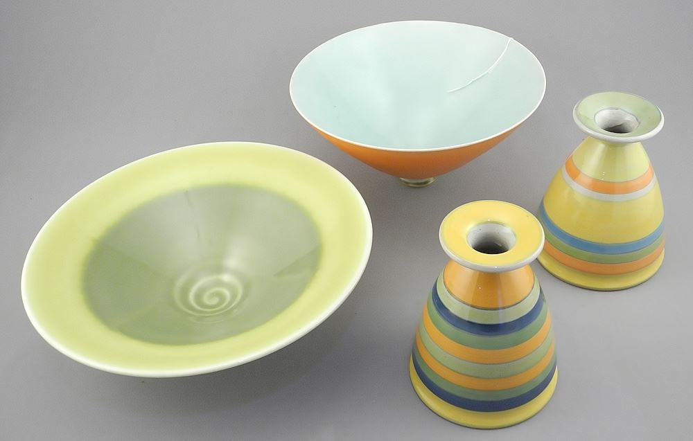 LOT 182 Two Mastro Paolo Orvieto Vases & Two Everted Rim Bowls, 2 1/2 - 4 1/4"h. Estimate: $50 - $60 Sold For: $80 Auction Date: Tuesday, November 18 2025 at 4:00 PM