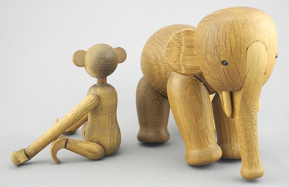 Kay Bojesen Elephant (signed, 6 1/4" L) & Bojesen-Style Monkey.