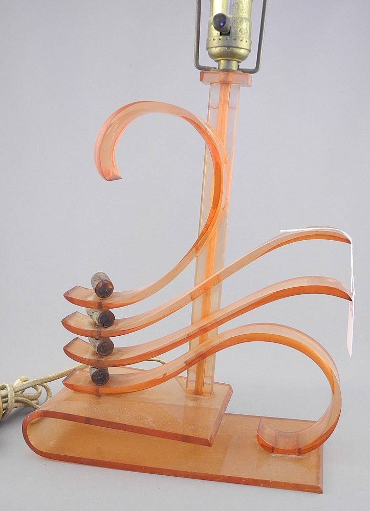 Vintage Pink Lucite Bakelite Table Lamp, 22"h (condition noted).