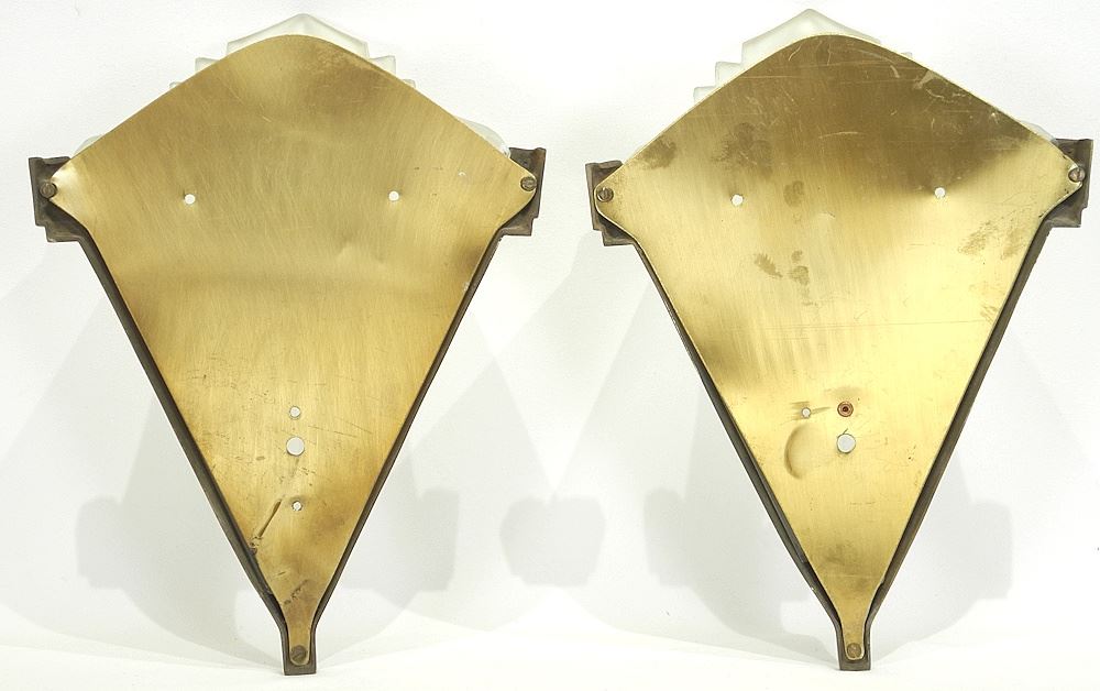 Pair of Art Deco Wall Sconces with Glass Shades (one base chipped), 13" (need wiring).