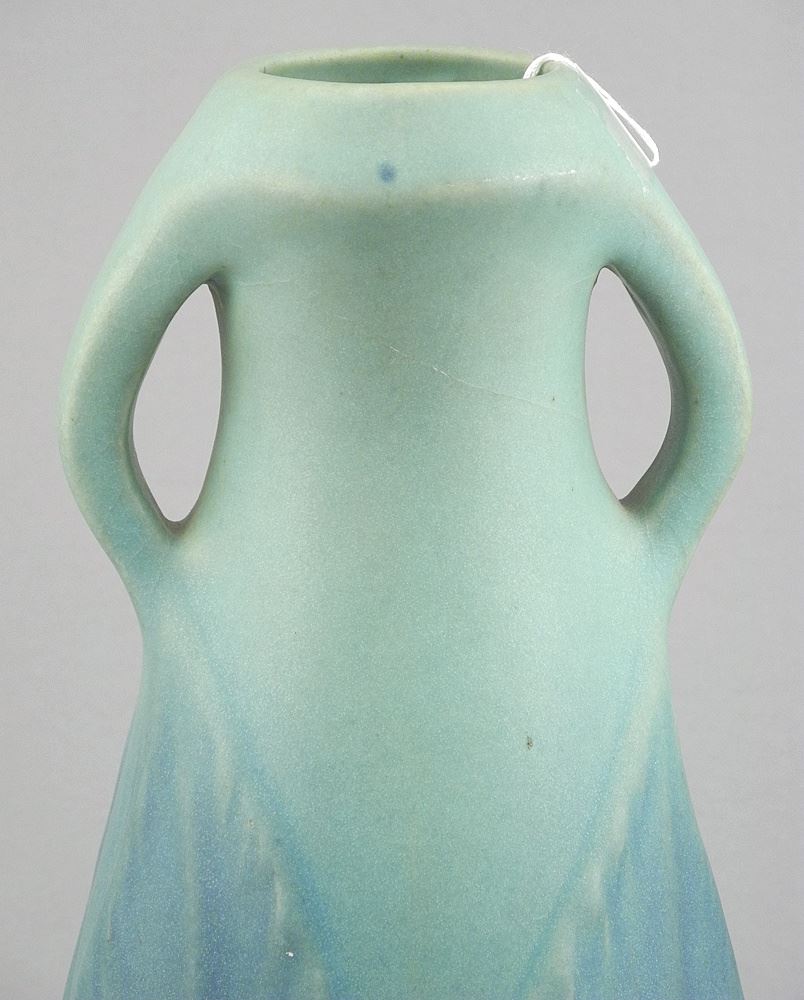 LOT 188 Van Briggle Colorado Springs: Pottery Vase, 8 1/4"h (cracked). Estimate: $50 - $60 Sold For: $40 Auction Date: Tuesday, November 18 2025 at 4:00 PM