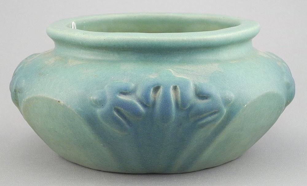 American Art Pottery Molded Low Bowl, 7 1/2" Diameter, Monogrammed G