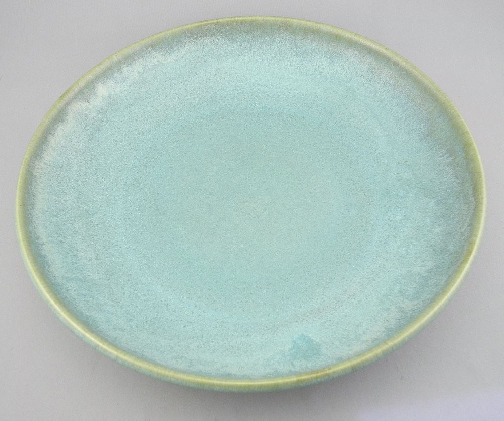 Stoneware Low Bowl Monogrammed Jan Grove, Victoria, Canada, 12 3/4" Diameter.