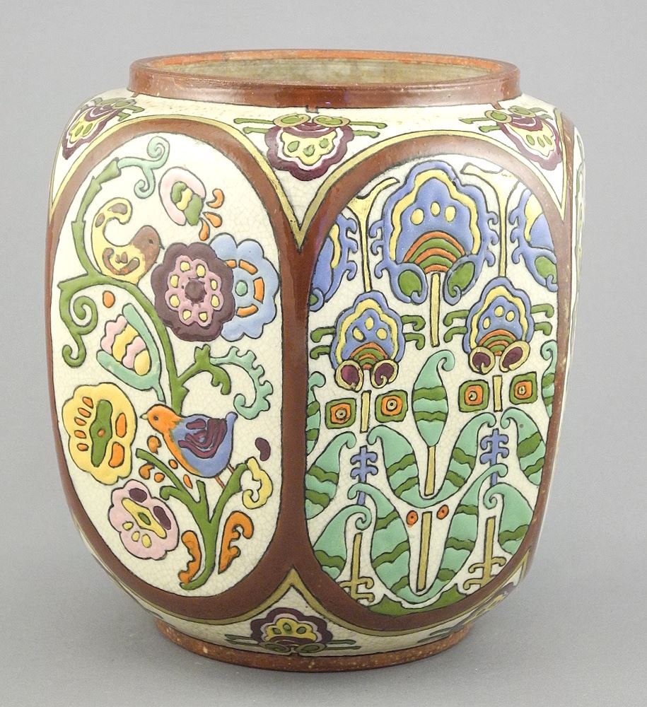 Hexagonal Enameled Vase, Monogrammed EFH 1929, 6 1/8"h.