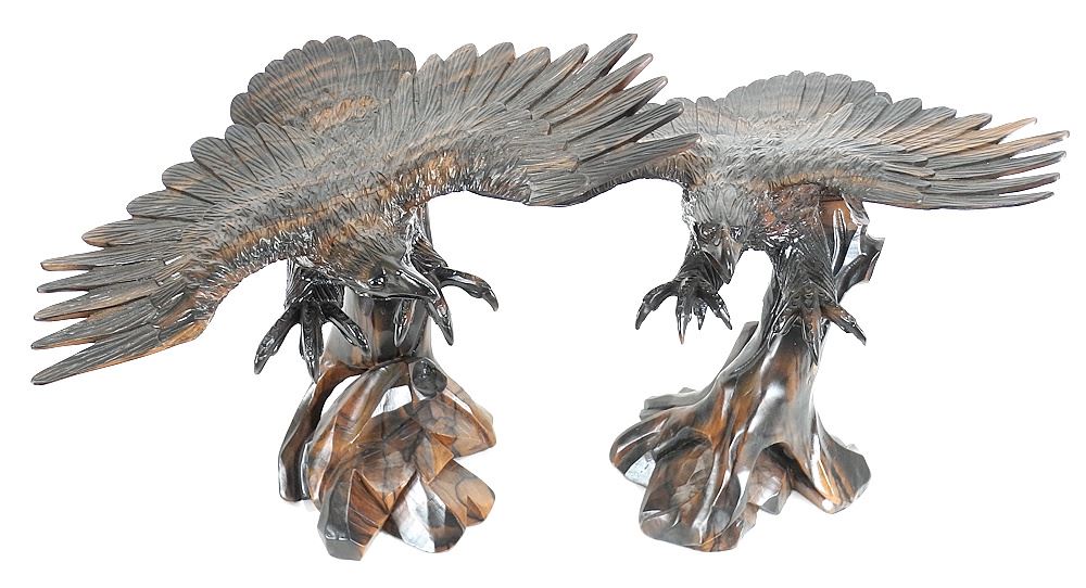 Pair of Southeast Asian Carved Hardwood Eagle Sculptures.