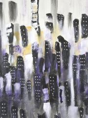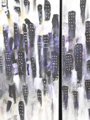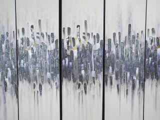 Five Panel Oil on Canvas signed Elias (Munoz), Each 64 x 16", "Violet Metropolis 2012".