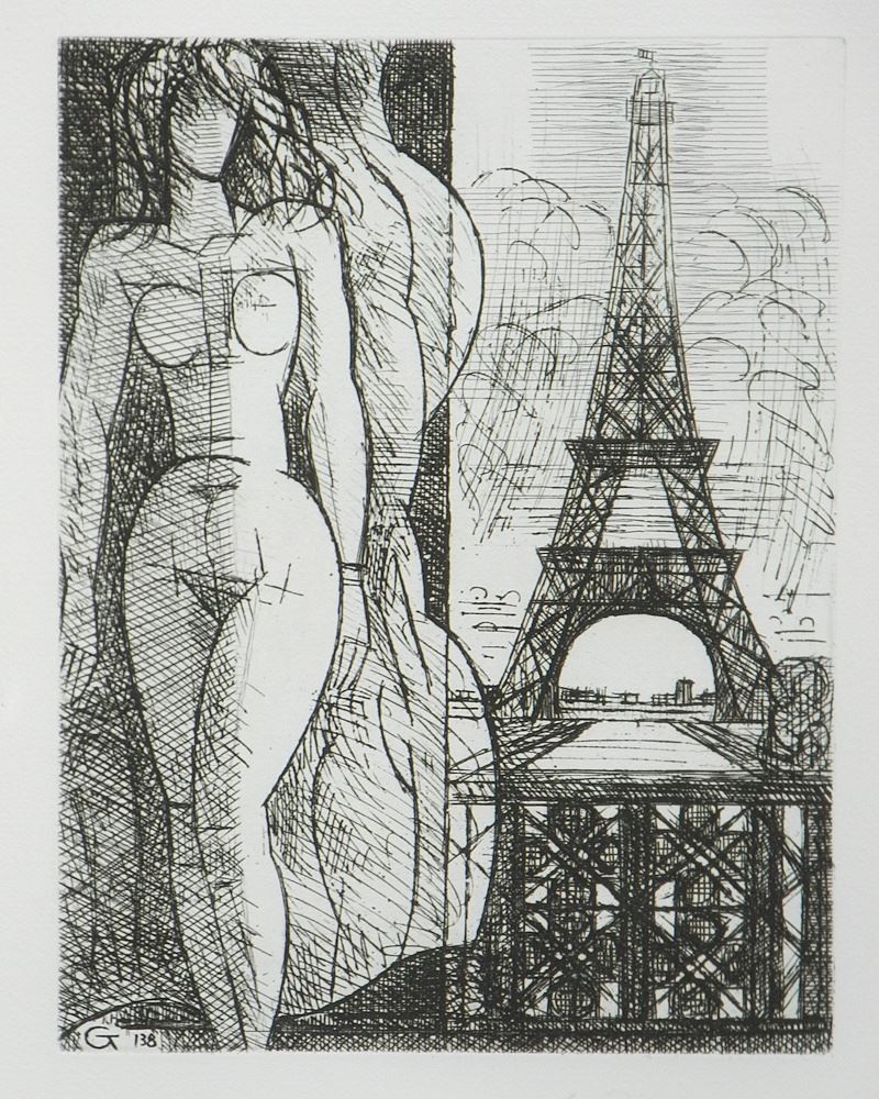 Musee De Louvre Etching After Marcel Gromaire, Plate 10 1/4 x 7 3/4".