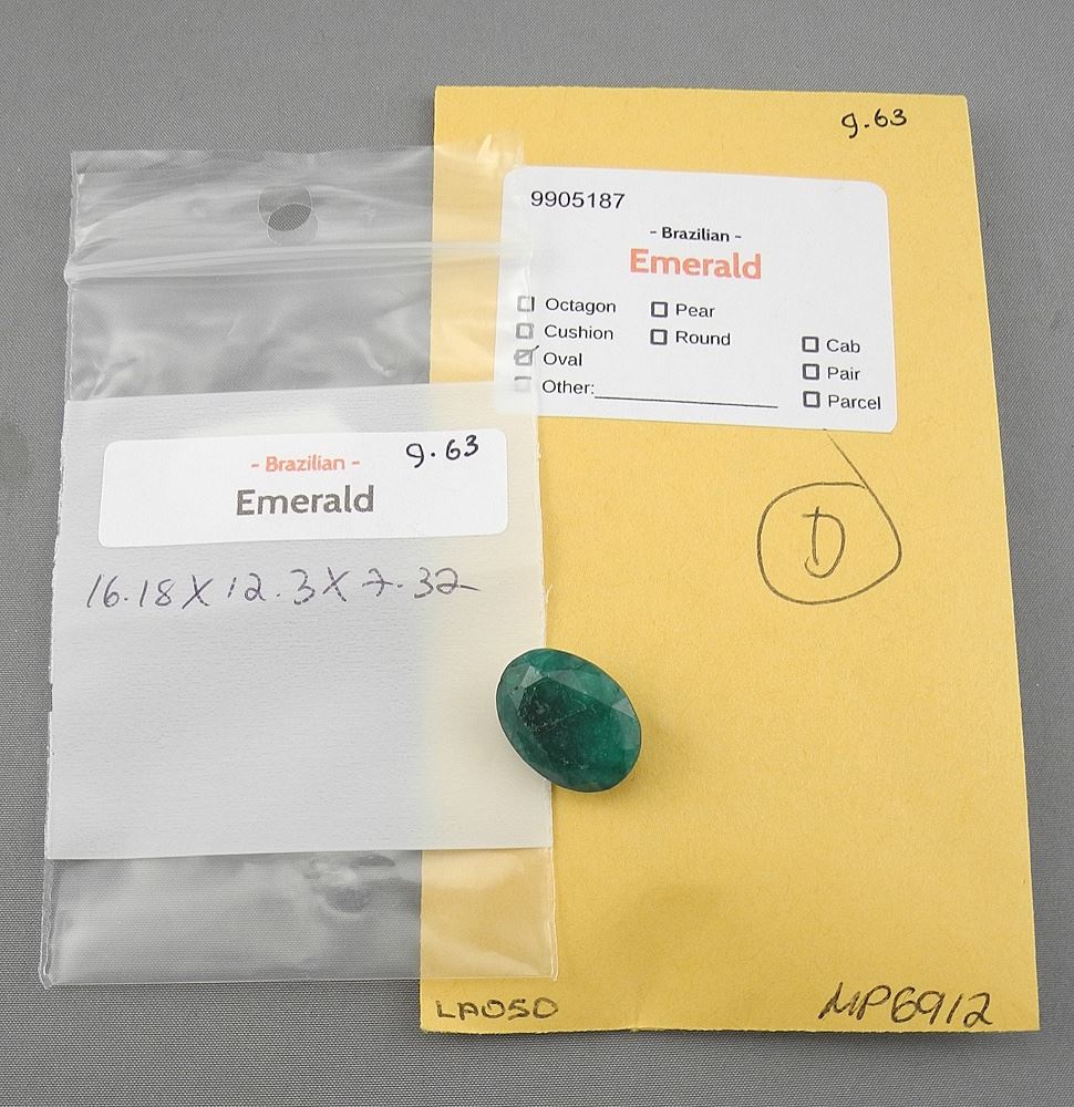 LOT 249 9.63 CT Oval Cut Brazilian Emerald Gemstone. Estimate: $60 - $80 Sold For: $45 Auction Date: Tuesday, January 27 2026 at 4:00 PM