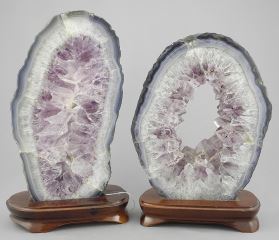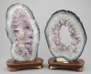 LOT 202 Two Amethyst Geode Specimens on Stands, 10 1/4 & 9"h. Estimate: $100 - $150 Sold For: $250 Auction Date: Tuesday, January 27 2026 at 4:00 PM