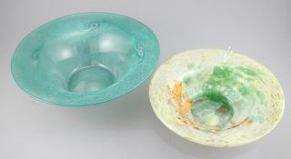 LOT 191 Monart Glass Bowl with Original Label (8 1/4" diam./edge chipped) w/ Green Bowl, 10 1/8" Diamet Estimate: $60 - $100 Sold For: $70 Auction Date: Tuesday, January 27 2026 at 4:00 PM
