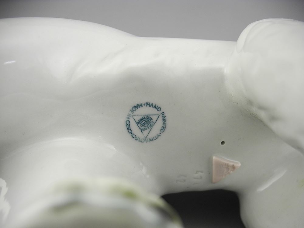 Royal Dux Polar Bear (12"L) with 3 Glass Animal Ornaments.