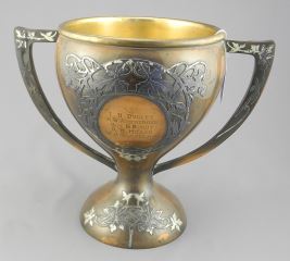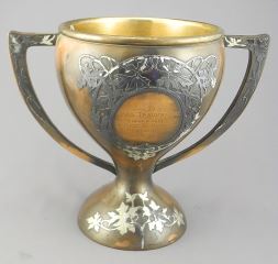 LOT 284 Heintz Style Sterling on Bronze Trophy Cup Marked 6530, Engraved SG, 8 3/4"h. Estimate: $100 - $200 Sold For: $130 Auction Date: Tuesday, January 27 2026 at 4:00 PM