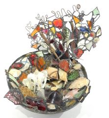 Beach Art Sculpture by Donna Mahan, 13 3/4"h, "Everything Found on The Beach".