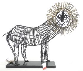 Wire Work Lion Sculpture, Manner of Curtis Jere, 23 1/4"h.