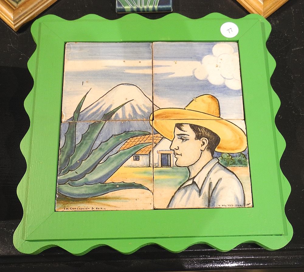 Collection of English/American /Mexican Tiles, 4 Largest 10 5/8 x 10 3/4".