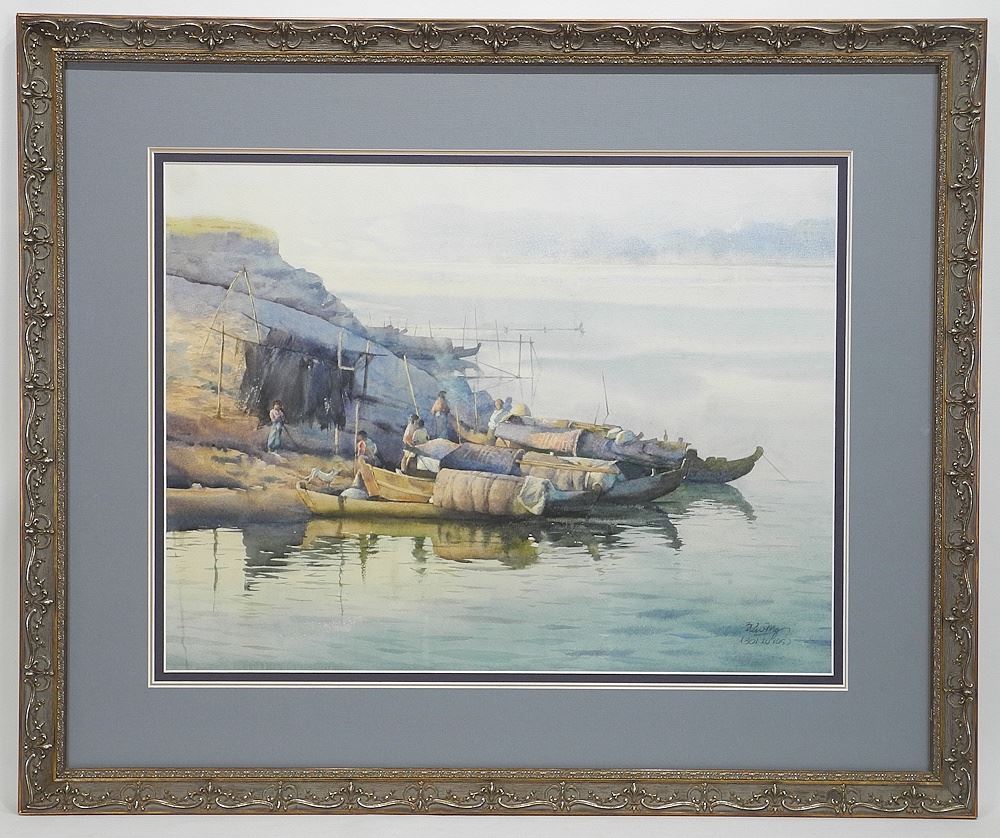 LOT 172 Watercolour signed Indistinctly, 17 x 22 5/8", "Fishing Boats at Waters Edge", 30/10/05. Estimate: $50 - $150 Sold For: $110 Auction Date: Tuesday, January 27 2026 at 4:00 PM
