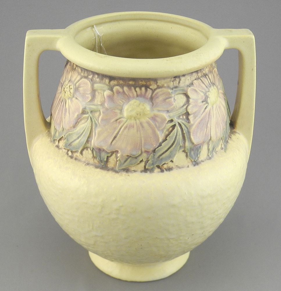 Roseville "Morning Glory" Handled Vase, 8"h.