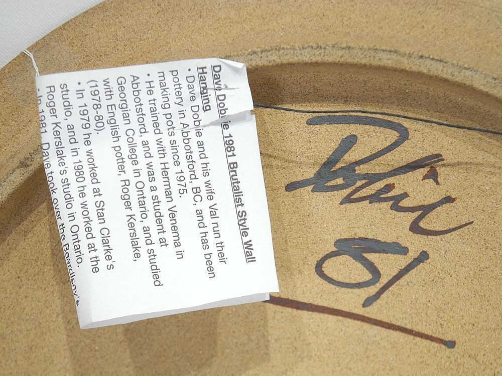 Stoneware Sgraffito Wall Charger signed (Dave) Dobie '81, 16 1/4" Diameter.