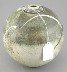 Globular Raku Vase signed (Gordon) Hutchens, 6 7/8"h.