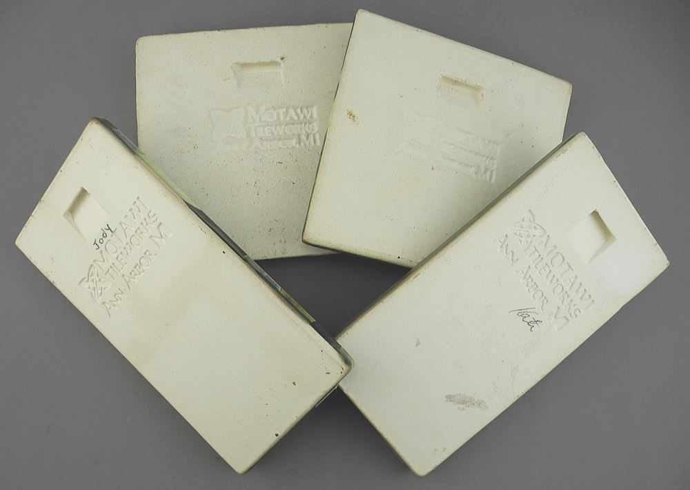 LOT 247 Four Motawi Tile Works Pottery Tiles , 6 x 6" & 8 x 4". Estimate: $60 - $100 Auction Date: Tuesday, January 27 2026 at 4:00 PM