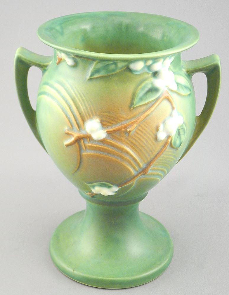 LOT 204 Roseville Snowberry Vase, 8 3/8"h. Estimate: $60 - $100 Sold For: $120 Auction Date: Tuesday, January 27 2026 at 4:00 PM