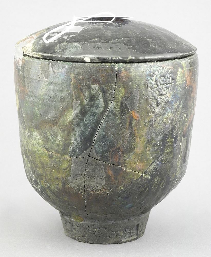 LOT 150 Raku Covered Pot with Impressed Mark, 5 3/8"h (thermal shock noted). Estimate: $50 - $60 Sold For: $25 Auction Date: Tuesday, January 27 2026 at 4:00 PM