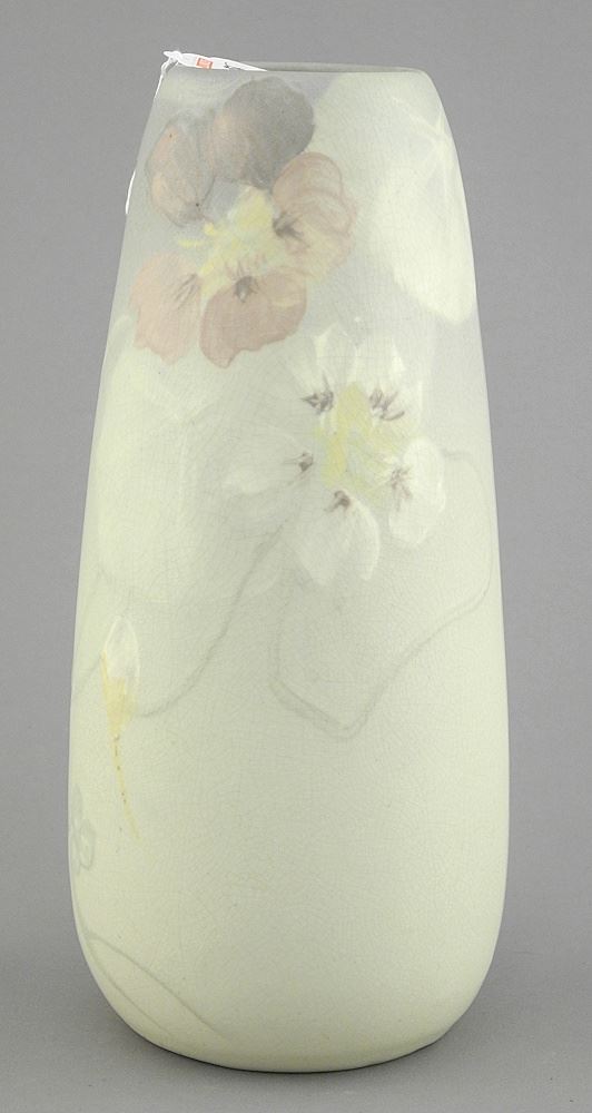 Weller Vase with Nasturtium, 8 1/2"h (glaze disruption noted).