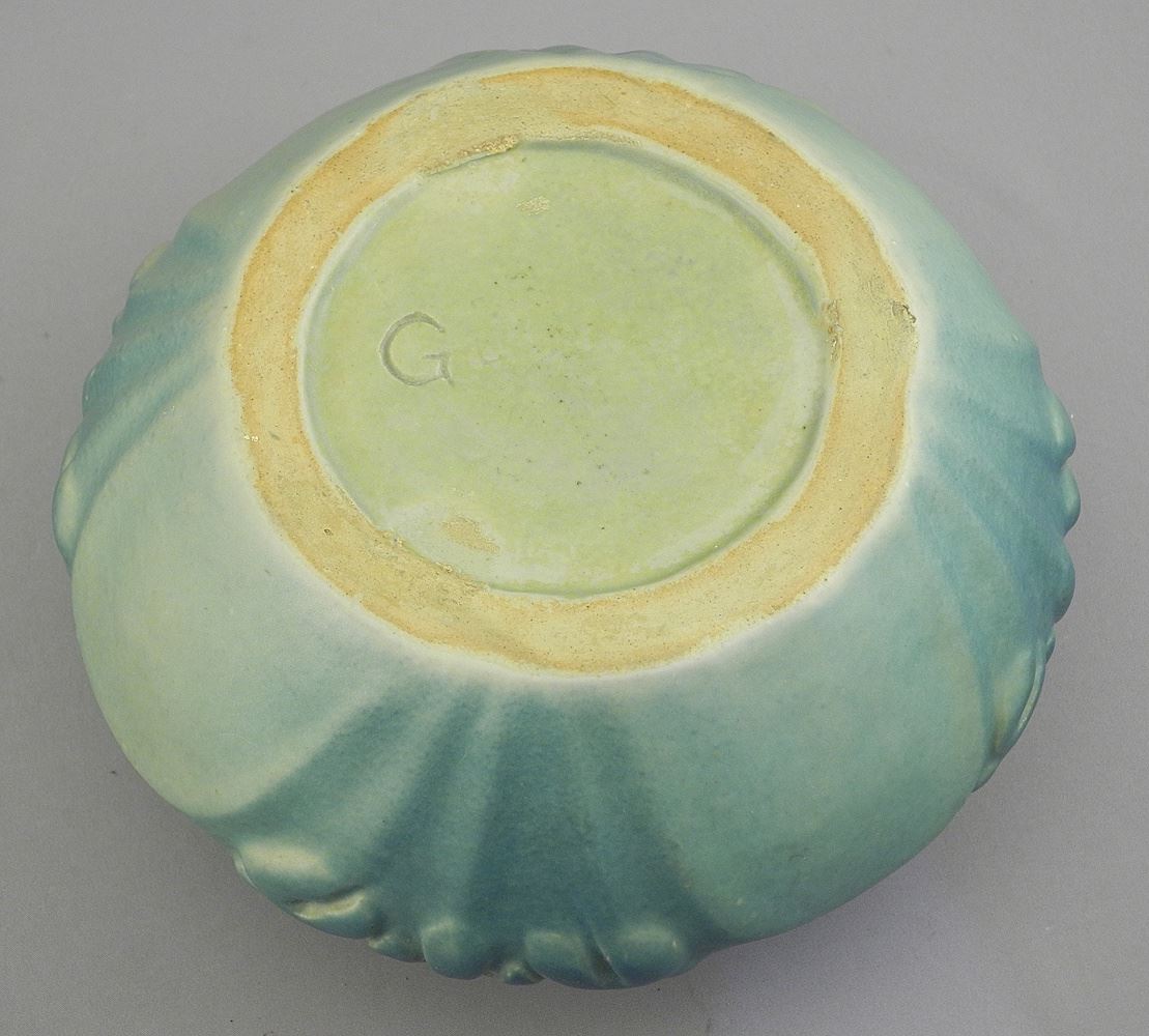 American Art Pottery Molded Low Bowl, 7 1/2" Diameter, Monogrammed G