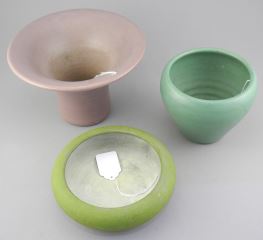Two Piece Zanesville Pottery Vases (509 & 513) & Bowl, 2 1/8 - 5"h (one chip noted).